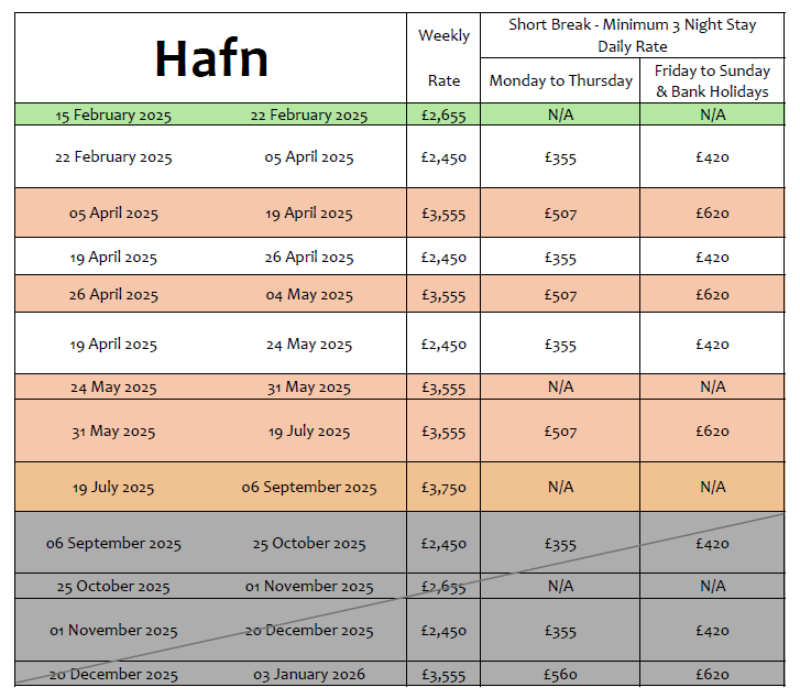 Up to date availability is shown on Airbnb (Link to Airbnb - Hafn Opens in a new window ).
